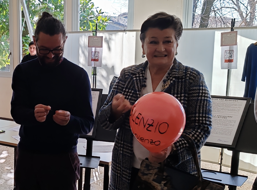L’accoglienza dei visitatori è stata affidata agli alunni Ciceroni delle classi quarte e quinte, che hanno emozionato i presenti recitando la poesia originale nata all’Università dell’Arkansas, da cui l’intero progetto ha avuto inizio e in un potente momento finale, i visitatori sono diventati parte integrante di una performance simbolica: all’uscita della mostra, sono stati invitati a far esplodere dei palloncini rossi sui quali erano state trascritte frasi dense di stereotipi e pregiudizi. Un gesto liberatorio per distruggere i vecchi retaggi culturali e riaffermare che la consapevolezza è il primo passo verso la libertà.